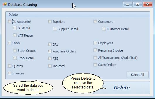 Keywords: Clearing Transactions,Database Cleaning,Delete Form