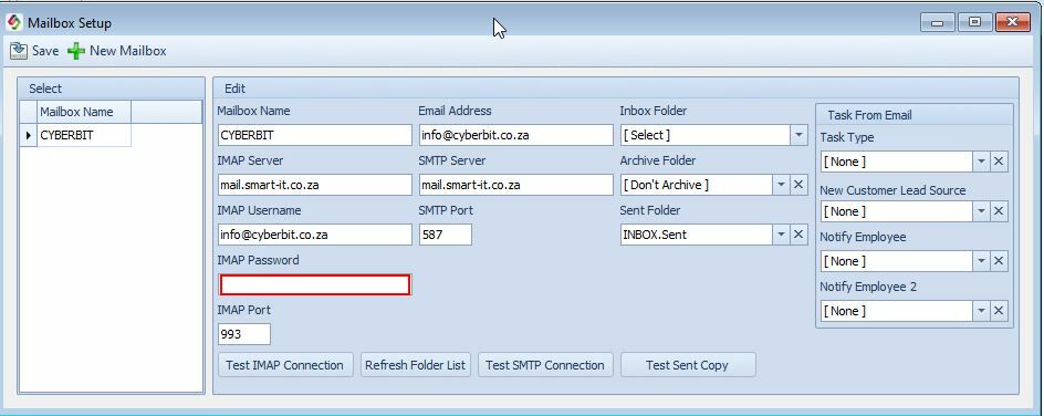 Step 1 (New Mailbox) Add all your mailboxes, for example, supports, sales, accounts, and so on, and then import the emails into 'Employee Tasks' and assign them to an employee.